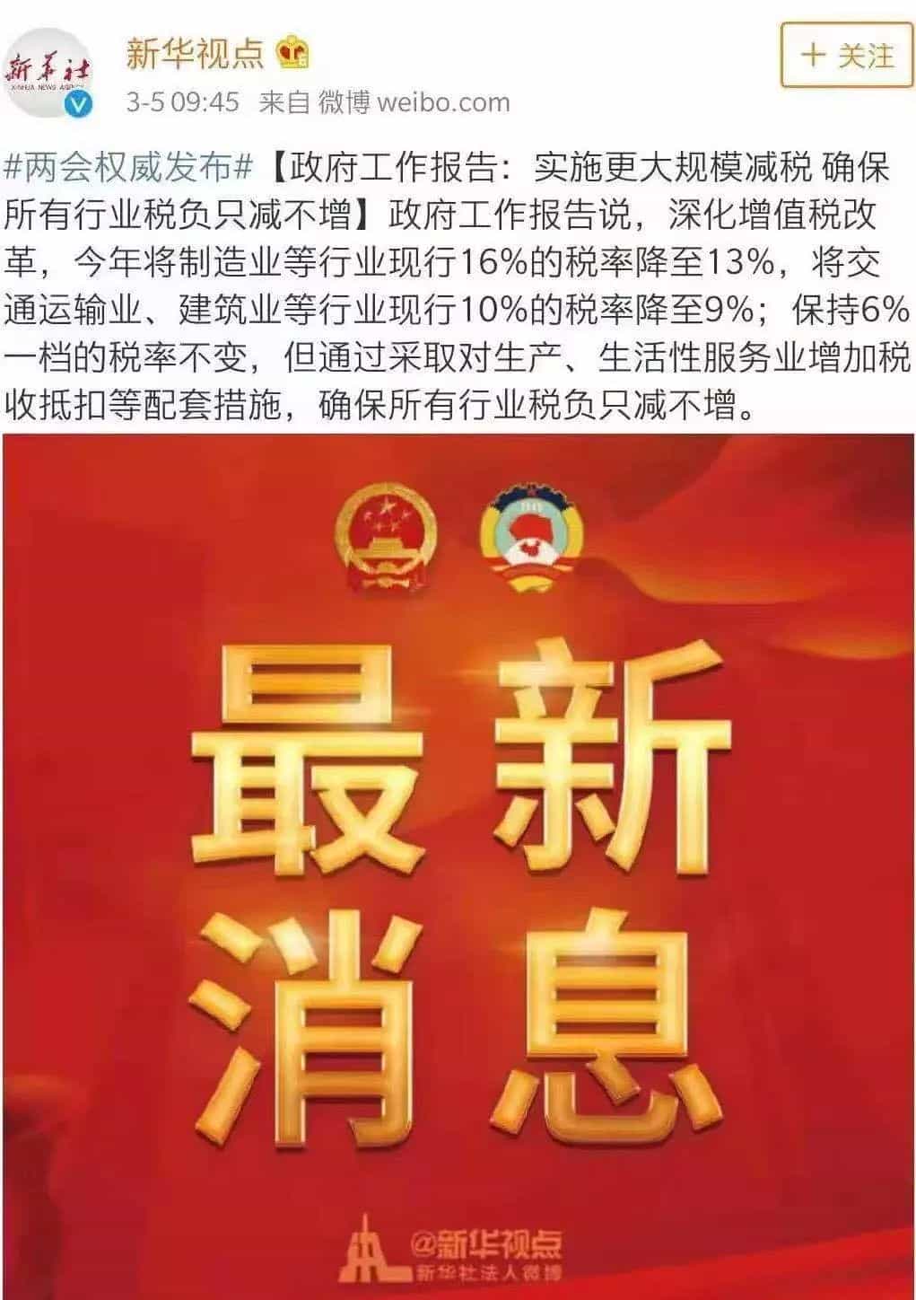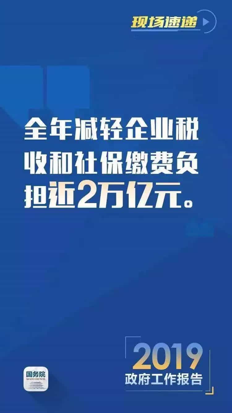 2、降低企業稅負。政府工作報告提出,2019年要實施更大規模的減稅,普惠性減稅與結構性減稅并舉,重點降低制造業和小微企業稅收負擔。財經專家認為,其中的重頭戲是增值稅改革。此次調整后,將變為13%、9%與6%三檔。而對于降低制造業增值稅,雖然此前一直呼吁不斷,但本次3個百分點的降幅遠超預期。