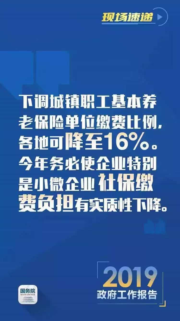 3、降低企業社保繳費負擔。《政府工作報告》還提出,2019年要明顯降低企業社保繳費負擔,下調城鎮職工基本養老保險單位繳費比例,各地可降至16%。穩定現行征繳方式,各地在征收體制改革過程中不得采取增加小微企業實際繳費負擔的做法。