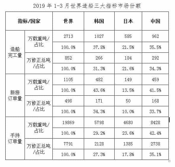 廣州國際海事展丨2019年1~3月船舶工業(yè)經(jīng)濟運行情況