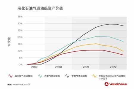 中型氣體運(yùn)輸船(MGC)將受益于液化石油氣供應(yīng)的增加和氨的貿(mào)易量的增長(zhǎng)。對(duì)于從事液化石油氣貿(mào)易的船舶而言,預(yù)測(cè)受中美貿(mào)易戰(zhàn)和新造船量減少的影響,市場(chǎng)供需平衡將會(huì)適度收緊,噸位增長(zhǎng)將所有放緩。超大型氣體運(yùn)輸船(VLGC)和中型氣體運(yùn)輸船(MGC)的新造船價(jià)格將受到租船收益的改善和積極的市場(chǎng)情緒的影響,確保船舶資產(chǎn)價(jià)值在2019年和2020年持續(xù)增加。
