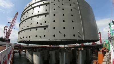 57個接近700噸巨型鋼圓筒,扎入海床以下25米。