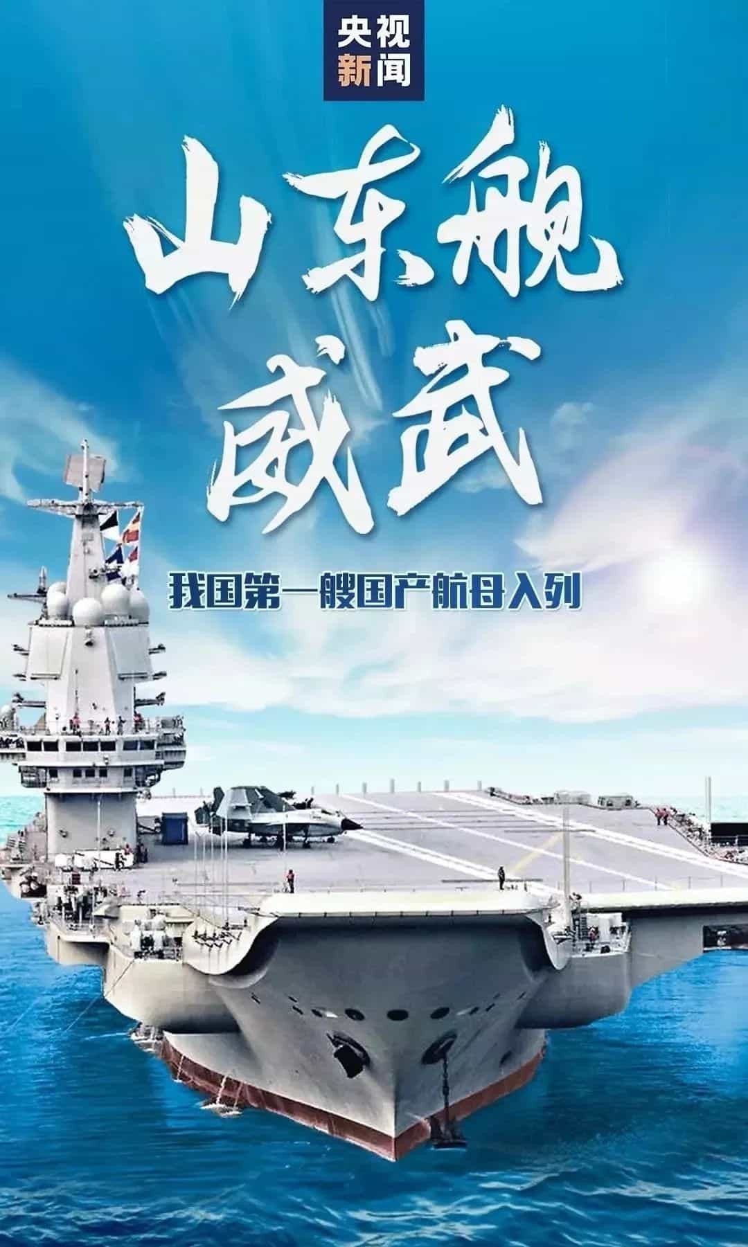 我國第一艘國產(chǎn)航空母艦山東艦17日下午在海南三亞某軍港交付海軍。中共中央總書記、國家主席、中央軍委主席習近平出席交接入列儀式。經(jīng)中央軍委批準,我國第一艘國產(chǎn)航母命名“中國人民解放軍海軍山東艦”,舷號“17”。