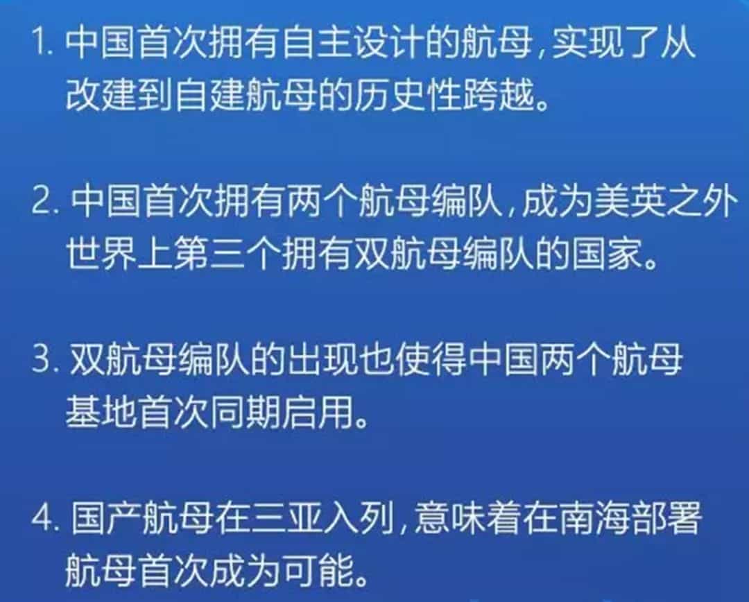 首艘國產(chǎn)航母的入列,標志著中國正式進入“雙航母時代”,創(chuàng)造了四個“首次”,讓人驕傲和鼓舞。