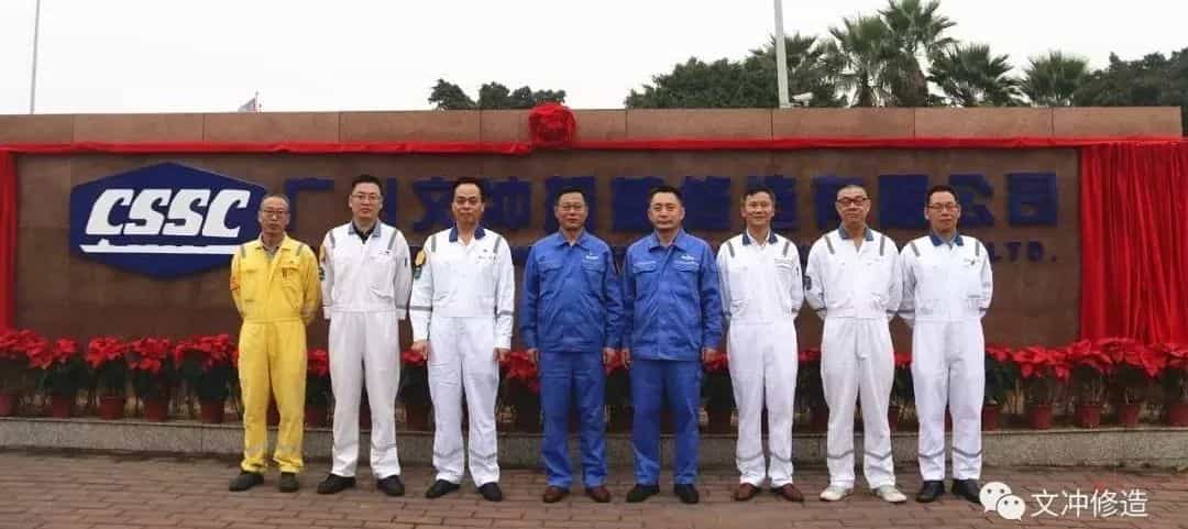 經文沖修造研究決定,自2020年1月1日起廣州文沖船舶修造有限公司正式運營。1月2日上午8時28分,文沖修造舉行揭牌儀式。廣船國際黨委副書記、總經理兼文沖修造董事長陳激、廣船國際黨委副書記、工會主席兼文沖修造黨委書記張慶瓛為文沖修造揭牌。文沖修造公司領導、各部門助理以上管理人員、勞模、先進代表及員工代表等約120人參加了儀式。儀式由文沖修造總經理謝俊鵬主持。