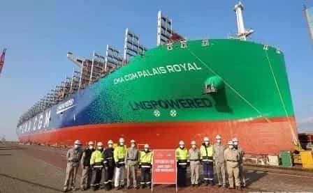 滬東中華下屬江南長興造船為法國達飛海運集團建造的23000TEU雙燃料動力集裝箱船出塢