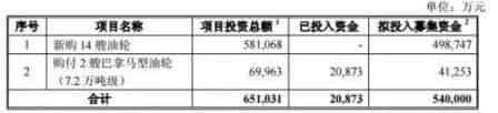 中遠海能這一募資計劃最初在2017年10月披露,當時,中遠海能計劃非公開發行約8.06億股,募資54億元,用于新購14艘油船和2艘巴拿馬型油船,以進一步擴充升級船隊規模。其中,新購14艘油船項目投資總額約為58.1億元,擬投入募集資金約49.9億元;購付2艘巴拿馬型油船項目投資總額約為6.996億元,擬投入募集資金約4.125億元。