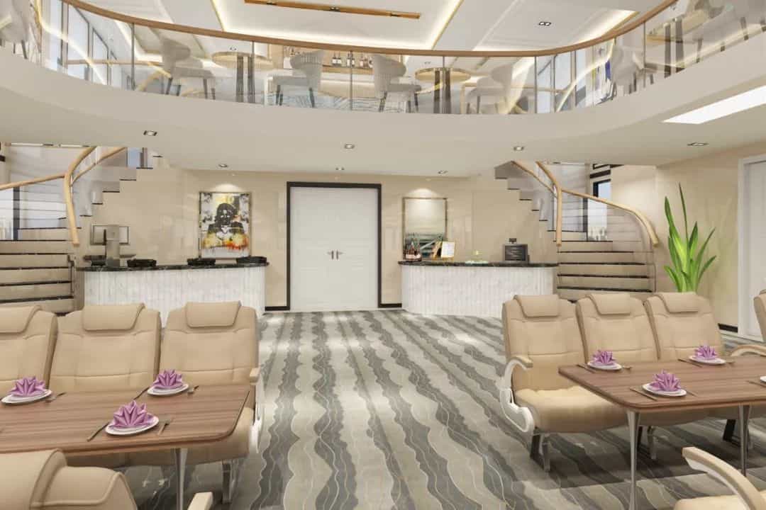 作為首批由國家交通部海事局正式批復并通過中國船級社CCS認證的純電池動力游船,486客位純電動客船采用現代豪華游船的創新設計理念,滿足觀光游覽、接待、商務、慶典等綜合功能。該船主體為全鋼質雙體焊接結構,采用全通透設計,設兩層甲板,整船總長42.5m,型寬12.5m,型深3.3m,為全電力全回轉對轉舵槳雙機推進,航速10.0kn,建成后將躋身全國示范式純電動游船行列,成為珠江夜游的又一極具代表性的名片!