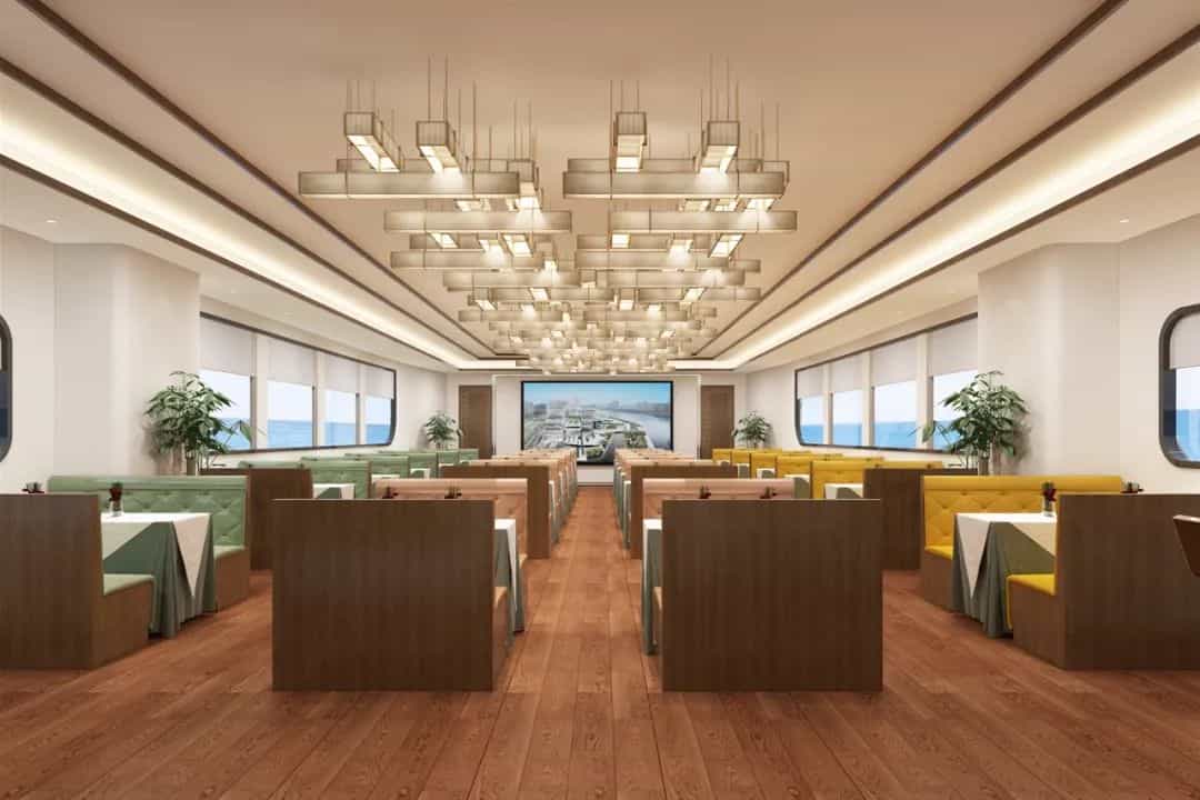 該船的主動力源由兩套先進的高性能磷酸鐵鋰電池組成,電池容量達3000kwh,在能量管理系統EMS和電池管理系統BMS的加持下,電池組充放更加安全,能源利用更加高效,在滿足主推進和安全航行的同時,可實現零排放、低噪音,兼具環保與舒適的優良特性。
