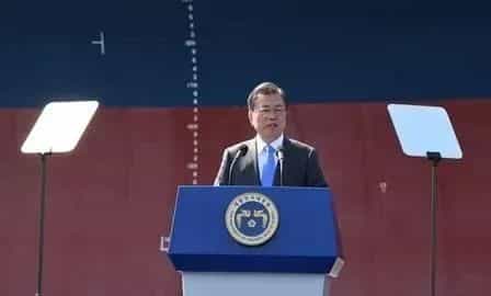 4月23日,韓國總統文在寅出席大宇造船海洋為現代商船(HMM)建造的世界最大集裝箱船“阿爾赫西拉斯號”命名儀式并致辭。文在寅提出了躋身全球5大海運強國的遠景,并表示為此韓政府將力推海運重構5年規劃。文在寅表示,“阿爾赫西拉斯號”將成為開啟韓國海運產業重構的信號彈,克服2017年韓進海運破產等危機的韓國海運產業仍具備了巨大潛力。