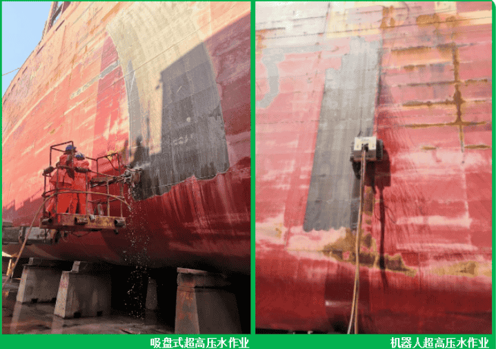 目前,威海金陵船廠全力推進綠色修船、科技修船。4月29日,在進塢修理的“BERGE HAKODATE”輪上首次使用吸盤和機器人進行外板滿扒油漆作業(yè)。繼本月中旬首次采用超高壓水對塢修船舶進行外板除銹作業(yè)后,威海金陵船廠本次利用吸盤和機器人2500公斤的水壓對外板原始油漆及生銹腐蝕部位進行清潔處理,不僅滿足環(huán)保要求,而且大幅提高生產(chǎn)效率。今后將在水回收、處理、更大范圍推廣應(yīng)用等事項上進行研究實施。