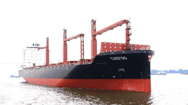 △ 中船澄西建造的7萬(wàn)噸木屑船順利下水