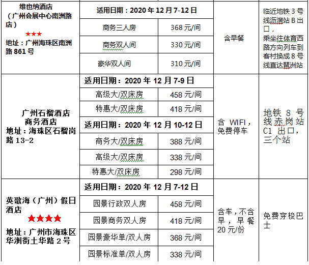 ①由于展會期間房源緊張,建議盡早預定,以免出現房價提高或沒有房間的情況;