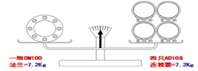 二片DN100法蘭重7.2Kg,四個DN100連接器重7.2Kg