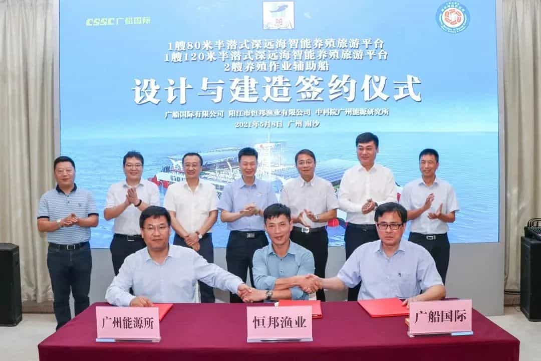 近日,中國船舶集團廣船國際和陽江市恒邦漁業有限公司簽訂1艘80米半潛式深遠海智能養殖旅游平臺建造合同,該平臺建成后將是廣東省首個大型半潛式養殖旅游綜合平臺。儀式還同時簽訂了1艘120米半潛式深遠海智能養殖旅游平臺和2艘養殖作業輔助船合作意向書。