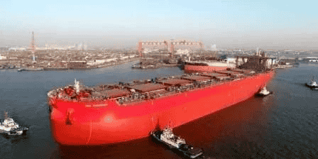 據據廣州國際海事展了解,這是新時代造船建造的泛洋海運系列6艘325000載重噸VLOC項目的最后一艘,該系列船總長340米,垂線間長333.1米,型寬62米,型深29.5米,結構吃水21.4米,載重32.5萬噸,入級韓國船級社(KR)。