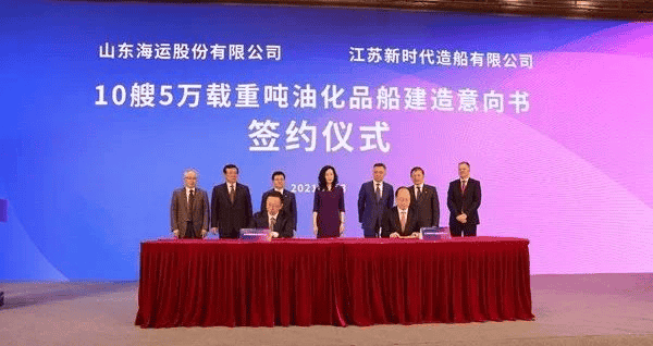 近年來,新時代造船先后建造了5萬噸油化船、11.5萬噸油船、16.3萬噸原油船、32萬噸超大型油船等特色船型。此次國銀租賃10艘5萬噸油船也是新時代造船的成熟產品。