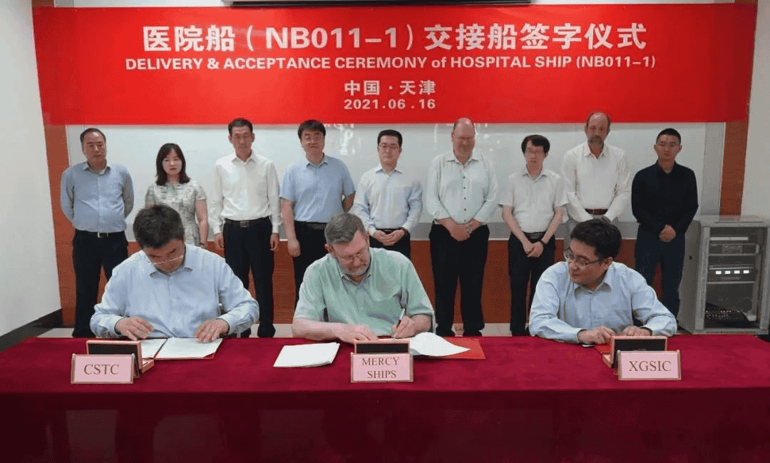 日前,由中國船舶集團有限公司旗下中國船舶工業貿易有限公司和天津新港船舶重工有限責任公司作為聯合賣方,為美國船東Mercy Ships公司建造的全球最大民用醫院船“Global Mercy”號順利交付。