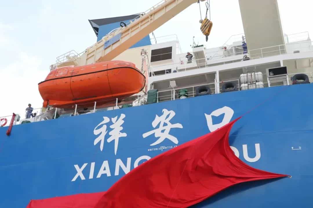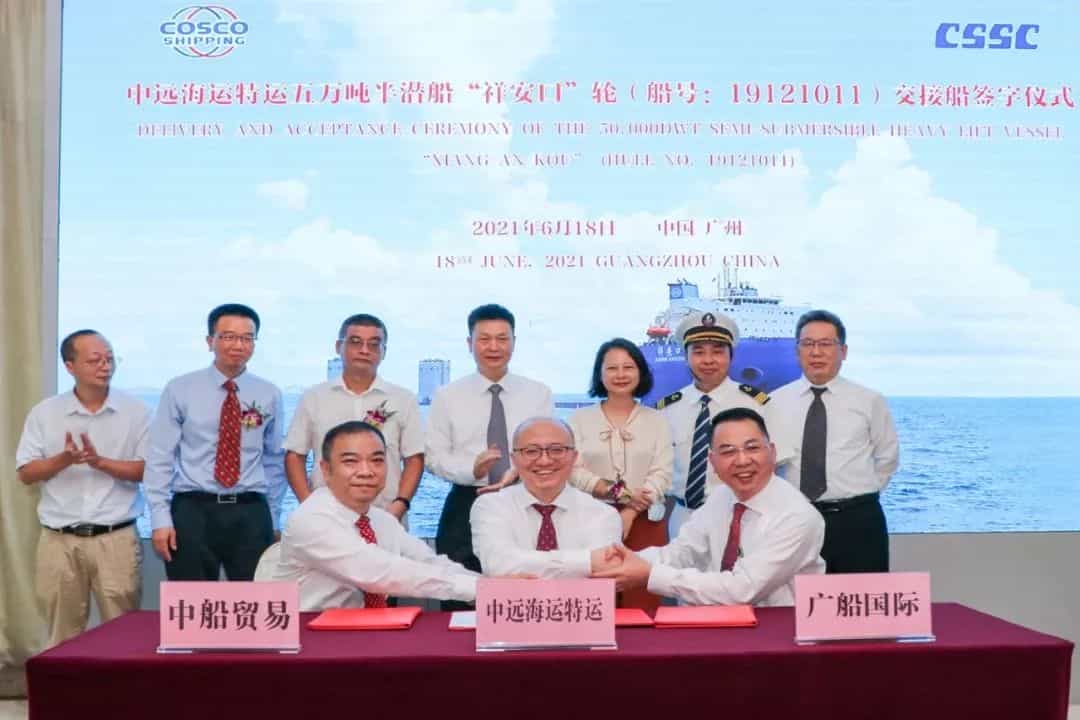 近日,由中國船舶集團旗下廣船國際為中遠海運集團旗下中遠海運特運建造的5萬噸半潛船“祥安口”號命名交付。