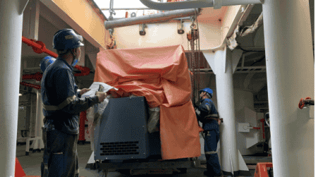 該項空氣潤滑技術被應用于32.5萬載重噸Guaibamax型超大型礦砂船(VLOC)“維多利亞海洋號(Sea Victoria)”,安裝在甲板上的10臺壓縮機將空氣注入船體底部的20臺裝置中。