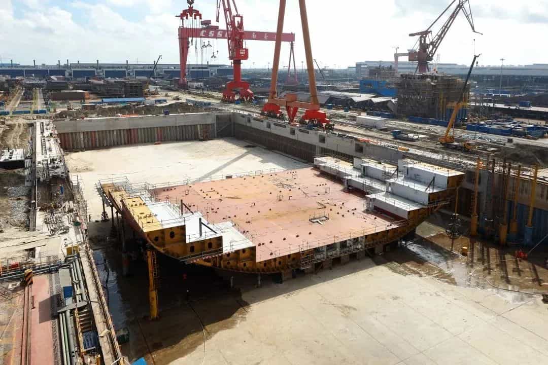 7月22日,中國船舶旗下滬東中華承建的全球最大24000TEU集裝箱船首個大型總段“入駐”長興島最長船塢,搭載總組進入新階段。這標志著滬東中華長興造船基地1號船塢的主體接長改造工程取得圓滿成功并正式投入使用,進一步提升了超大型箱船建造“硬核”能力。