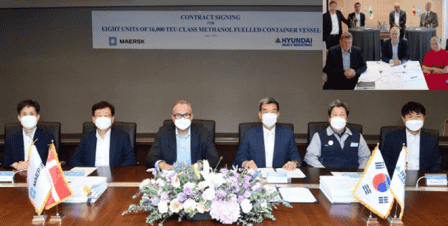 8月24日,現代重工集團負責造船業務的二級控股公司韓國造船海洋與馬士基集團攜手簽訂了8+4艘16000TEU級甲醇雙燃料動力超大型集裝箱船的建造合同,合同總金額為16474億韓元(約合14.1億美元),相當于每艘造價1.76億美元,備選訂單全部生效后總金額將達21.12億美元。