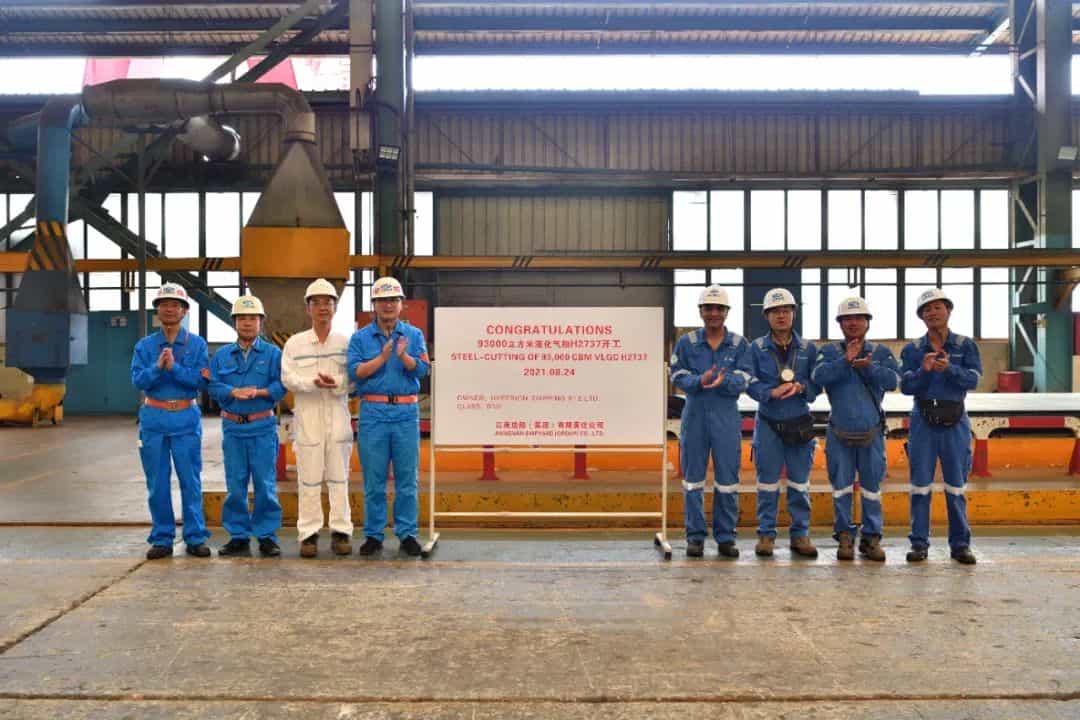 同日,江南造船為Petredec Holdings(Eastern)PTE Ltd建造的93000立方米超大型液化氣運輸船(VLGC)3號船正式開工。該船是江南造船自主研發設計的第四代VLGC精品船型(Panda 93P),也是目前世界上最大的雙燃料VLGC。