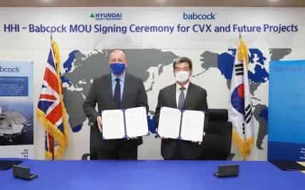 9月1日,韓國現代重工集團宣布,已與英國巴布科克集團簽署合作協議,雙方將就韓國首型航母項目展開合作,旨在獲得該型艦的設計建造訂單。同時,現代重工集團未來還將在國防工業和海洋技術等各領域與巴布科克集團進行技術專業分享交流,以共同提高全球競爭力。