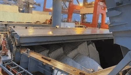 7月21日,招商輪船旗下上海明華38000噸靈便型散貨船“大美”輪順利完成886TEU標準箱從太倉港啟航前往北美。但該船出發(fā)不久后就發(fā)生了集裝箱倒塌事故,隨后有貨代發(fā)布公告取消該航次的運輸服務。