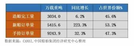 中國(guó)船舶工業(yè)協(xié)會(huì)(CANSI)報(bào)告指出,今年前9個(gè)月新訂單按噸位計(jì)算成長(zhǎng)超過(guò)200%。該報(bào)告顯示,中國(guó)造船企業(yè)造船完工量、新承接船舶訂單量和手持船舶訂單量三大造船指標(biāo)增幅明顯,繼續(xù)保持全球第一的市場(chǎng)份額。