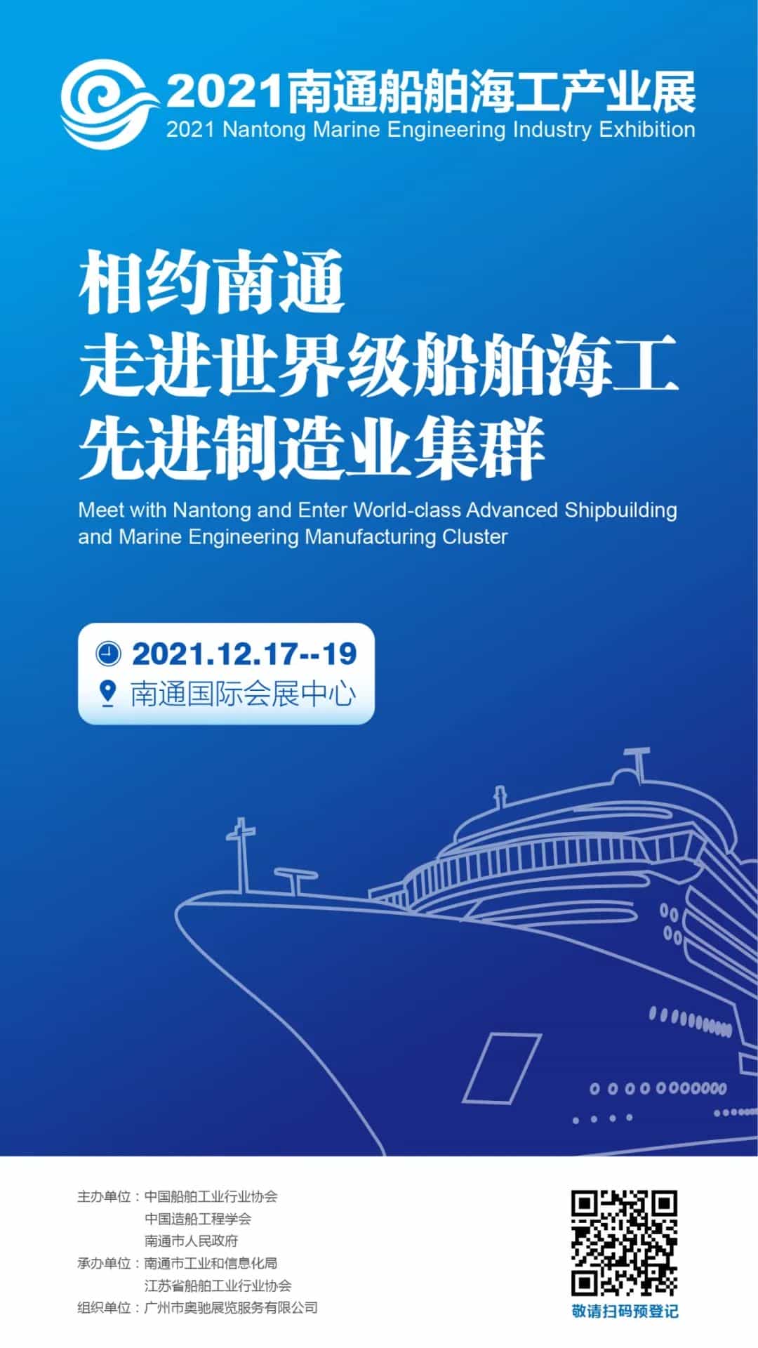 同期舉行2021南通船舶海工產業展,涵蓋江蘇“十三五”船舶工業成就展、船舶海工總裝展區、郵輪游艇展區、國際品牌展區、數字化轉型展區、產業鏈配套展區、活動演示區,為船舶企業提供一站式參觀、交流、采購平臺。