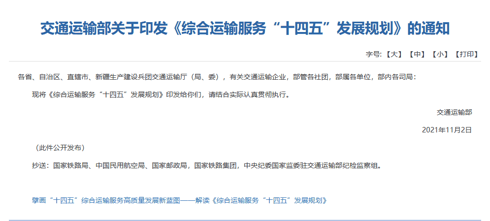 規(guī)劃提出,到2025年,多層次、高品質(zhì)的旅客出行服務(wù)系統(tǒng)和全鏈條、一體化的貨運(yùn)物流服務(wù)系統(tǒng)初步建立,現(xiàn)代國際物流供應(yīng)鏈體系不斷完善,運(yùn)輸結(jié)構(gòu)進(jìn)一步優(yōu)化,運(yùn)輸裝備水平大幅提高,綠色化、數(shù)字化發(fā)展水平明顯提高,安全應(yīng)急保障體系更加健全,治理能力顯著提升,服務(wù)支撐經(jīng)濟(jì)社會發(fā)展能力進(jìn)一步增強(qiáng)。