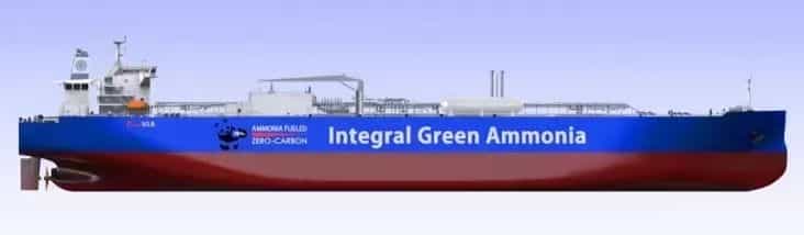 該型船將搭載氨燃料動力主機,并配置2個甲板氨燃料罐,真正實現“零”碳排放。該型船可運輸來自世界各地正在開發的新的綠色合成氨項目的液態氨,包括JS & Co將推廣的項目,以滿足歐洲和東北亞地區2025年的需求。