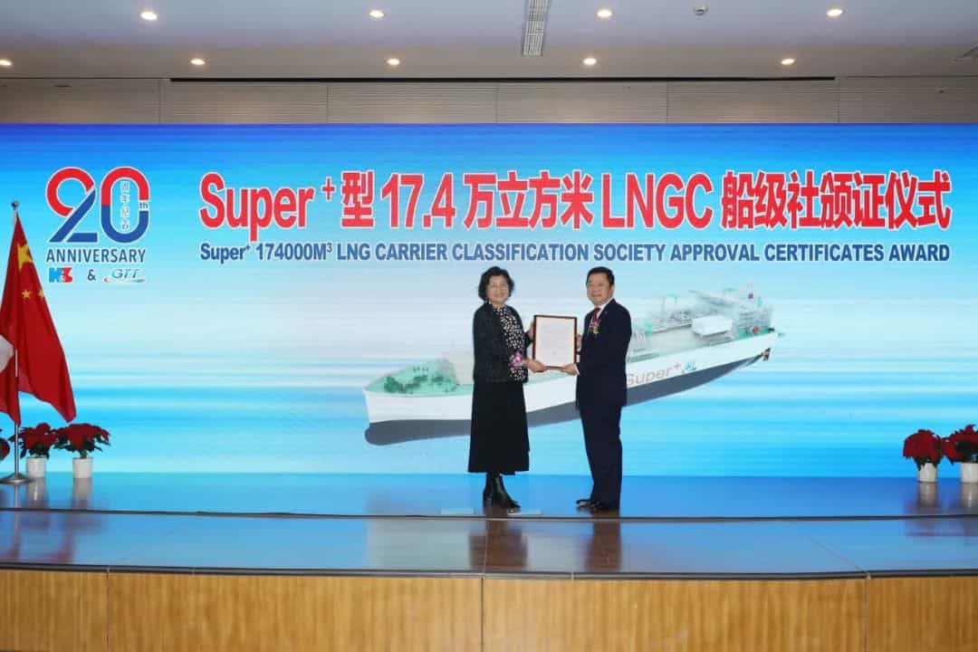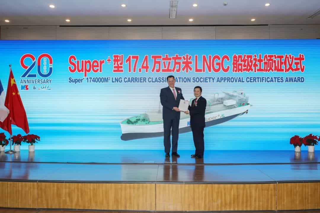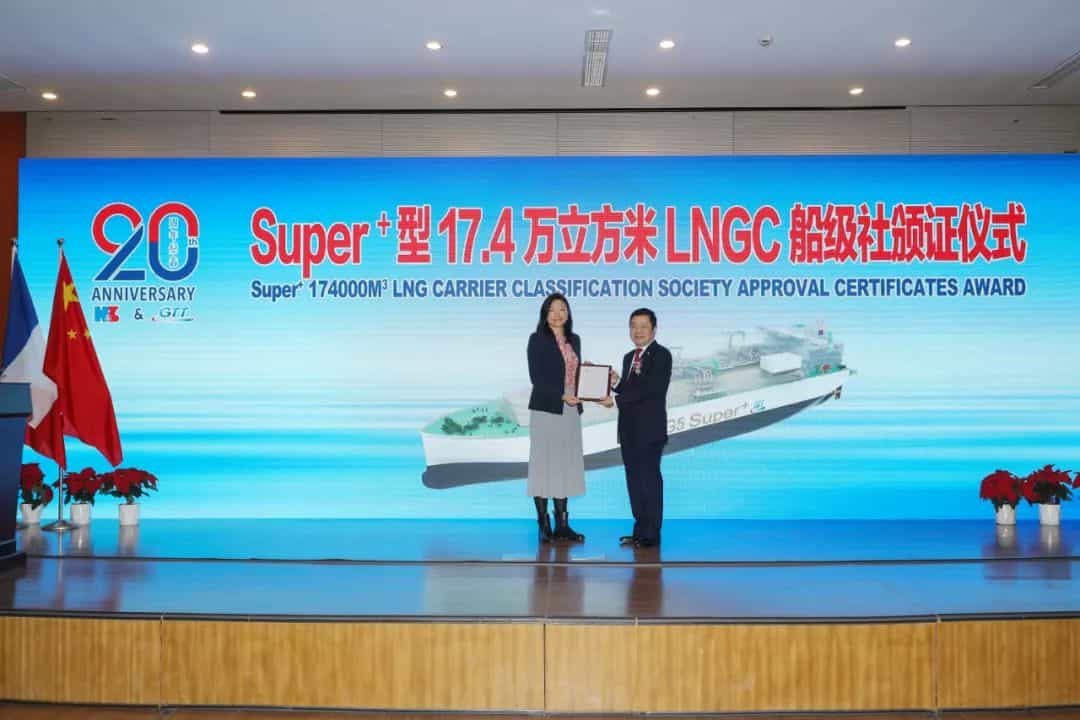 12月16日,由中國船舶集團(tuán)有限公司旗下滬東中華造船(集團(tuán))有限公司與法國GTT公司聯(lián)合研發(fā)的全球最新一代“長恒系列”17.4萬立方米液化天然氣(LNG)運(yùn)輸船獲得美國船級社(ABS)、法國船級社(BV)、英國勞氏船級社(LR)、DNV等4家國際著名船級社頒發(fā)的船型設(shè)計(jì)通用認(rèn)可(GDA)、入級預(yù)先認(rèn)可(PCA)等證書。
