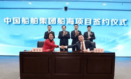 此外,此次簽約的船舶建造項目還包括:比利時CMB公司與青島北海船舶重工有限責任公司、中船貿易聯合簽署的2艘21萬噸氨燃料預留散貨船項目;華夏金融租賃有限公司與中船澄西船舶修造有限公司、中船貿易聯合簽署的8艘63500噸散貨船項目;德翔海運有限公司與上海外高橋造船有限公司、中船貿易聯合簽署的2艘7000TEU集裝箱船項目;SCHOELLER集團旗下新加坡AAL公司與中船黃埔文沖船舶有限公司、中船貿易聯合簽署的4+2艘32000噸多用途重吊船項目;韓國H-Line航運公司與廣船國際有限公司、中船貿易聯合簽署的2艘7000車雙燃料汽車運輸船(PCTC)項目;MSC地中海航運集團旗下渡輪運營商GNV公司與廣船國際簽署的2艘1500客/3100米車道豪華客滾船項目,以及中國船舶(香港)航運租賃有限公司與江南造船(集團)有限責任公司簽署的1+1艘超大型LNG運輸船建造意向書。