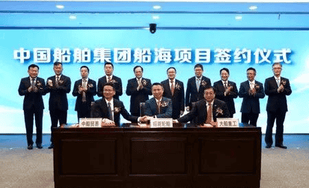 近日,中國船舶集團有限公司舉行船海項目集中簽約儀式。該集團旗下眾多成員單位與相關客戶共計簽約8項船舶建造合同或意向書、8項船舶設備合同或協議,累計金額達120億元。其中,船舶建造項目最高將達7型26艘。