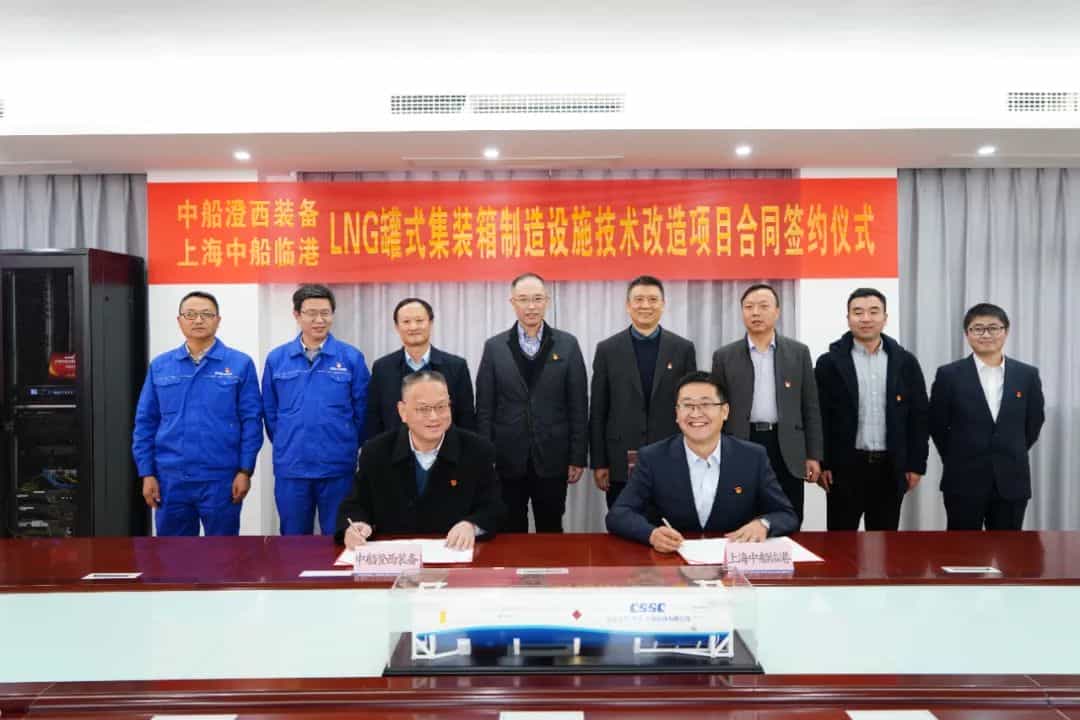 近日,由中國船舶集團有限公司旗下第十一研究所自主研發、設計和承建的全球首條45英尺液化天然氣(LNG)低溫液罐智能流水生產線合同簽約和開工儀式在中船澄西(泰州)裝備科技有限公司舉行。