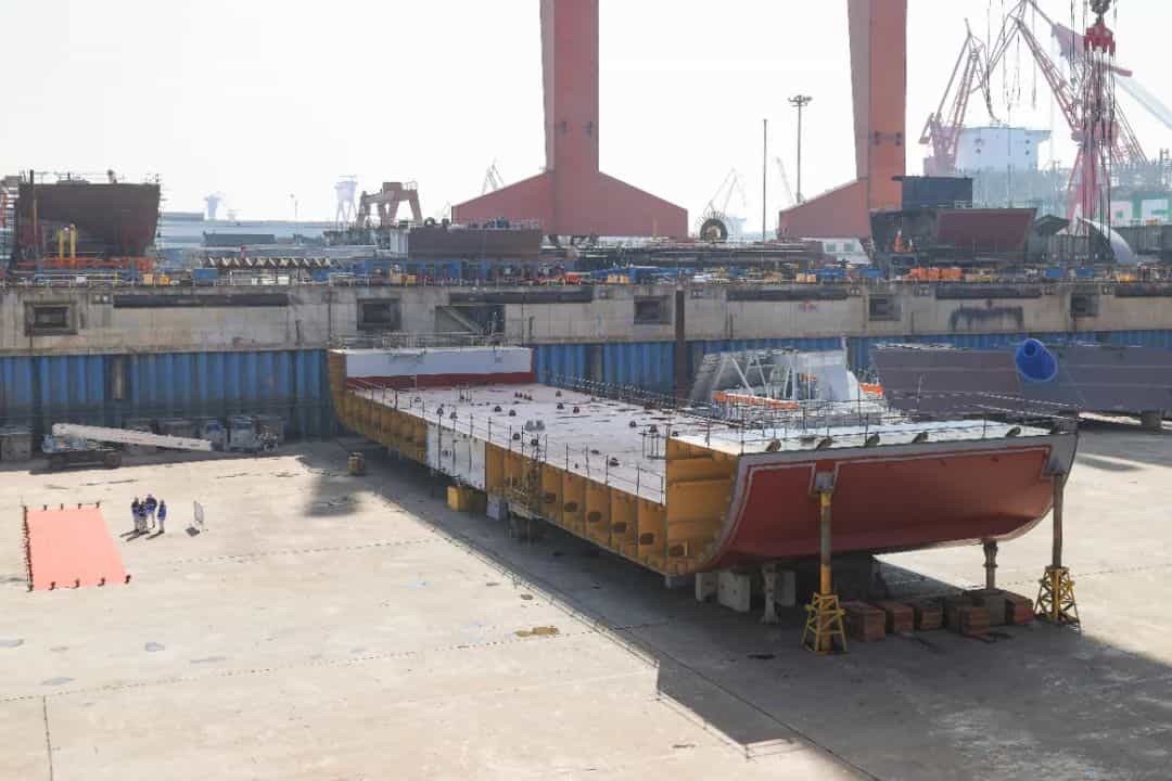 2月14日,中國船舶集團有限公司旗下滬東中華造船(集團)有限公司建造的全球最大24000TEU超大型集裝箱船7號船在中船長興造船基地2號船塢順利入塢搭載。