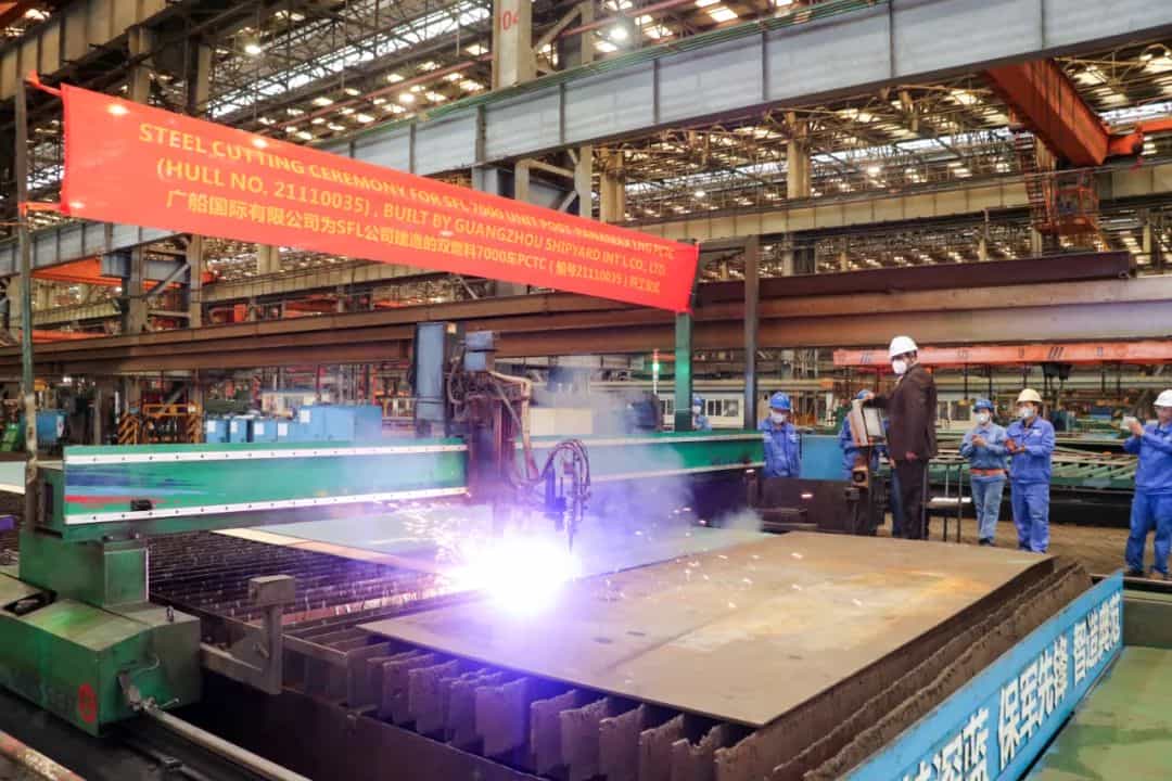 近日,由中國船舶集團旗下廣船國際為挪威SFL公司建造的7000車雙燃料汽車運輸船(PCTC)首制船舉行開工儀式。