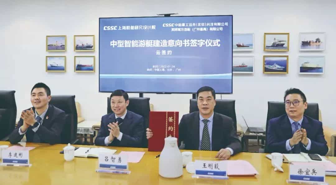 近日,中國船舶集團有限公司旗下上海船舶研究設計院與遠舟(北京)科技有限公司下屬英輝南方造船(廣州番禺)有限公司在上海正式簽訂我國首艘中型自主航行智能游艇建造合同。