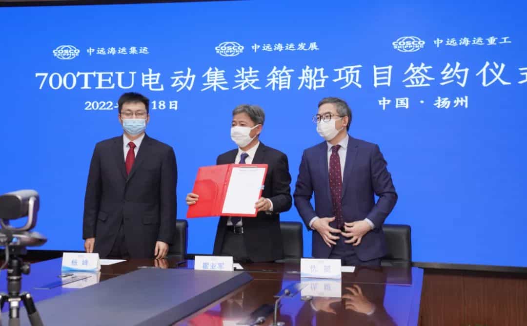 近日,揚州中遠海運重工有限公司與中遠海運發展股份有限公司通過視頻連線的方式成功簽署2艘700TEU級電動集裝箱船建造合同。根據中遠海發發布的公告,該系列船單船價格為5800萬元,2艘合同總價1.16億元。