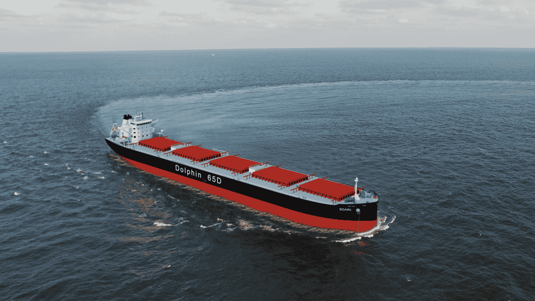 該型船采用中國船舶集團(tuán)旗下上海船舶研究設(shè)計(jì)院的新一代船型設(shè)計(jì),可航行于國內(nèi)近海航區(qū)及長江南京以下各港口,在吃水受限航道可實(shí)現(xiàn)載貨量最大化,而且該型船貨艙艙容大,可滿足絕大部分散裝貨品。