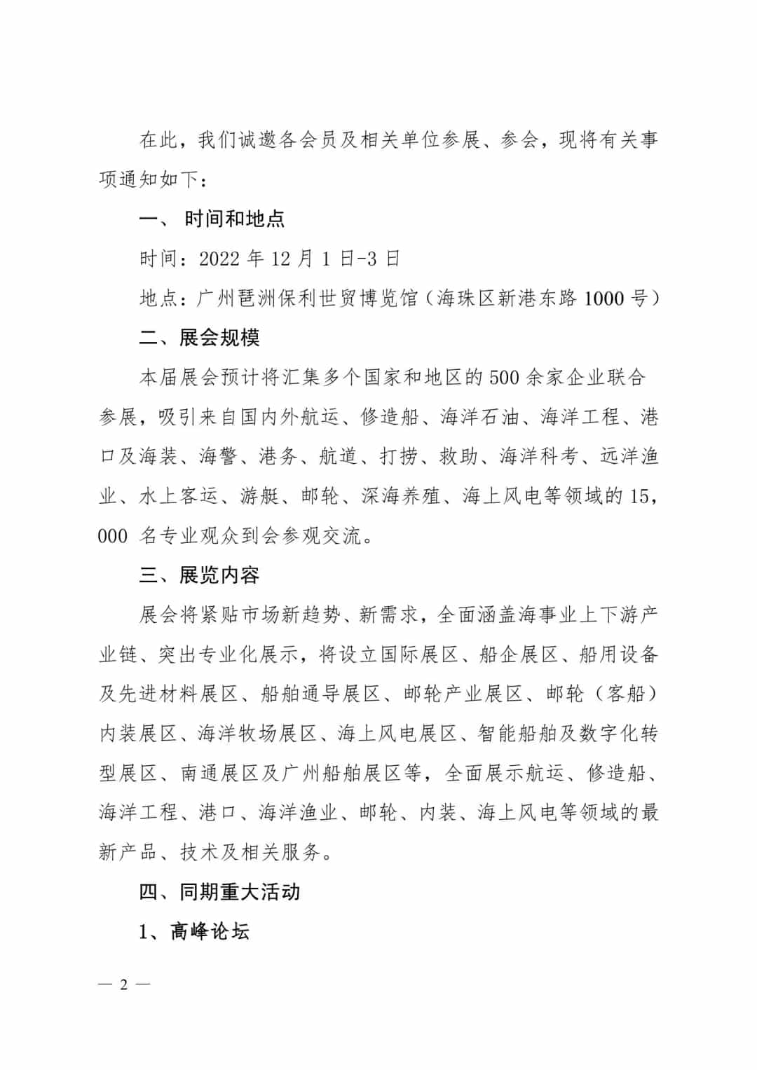 歷經16年的深耕與發展,廣州國際海事展已成為雙數年在中國及亞洲地區舉辦的最具規模、人氣最旺的海事盛會之一,是國際海事界尋求全方位、多層次交流與合作的橋梁和紐帶。誠邀各會員及相關單位參展、參會!
