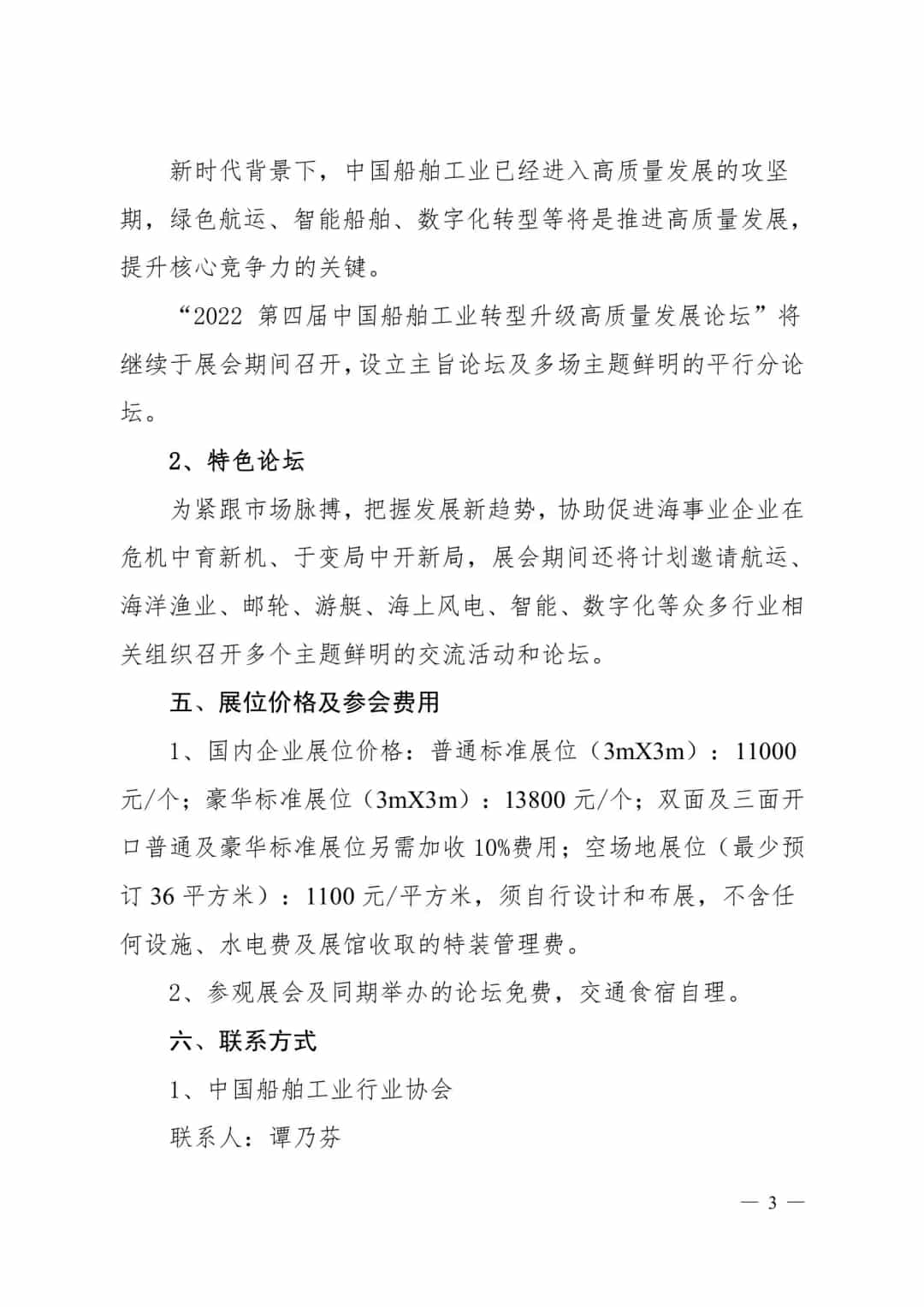新時代背景下,中國船舶工業已經進入高質量發展的攻堅期,綠色航運、智能船舶、數字化轉型等將是推進高質量發展,提升核心競爭力的關鍵。“2022 第四屆中國船舶工業轉型升級高質量發展論壇”將繼續于展會期間召開,設立主旨論壇及多場主題鮮明的平行分論壇。