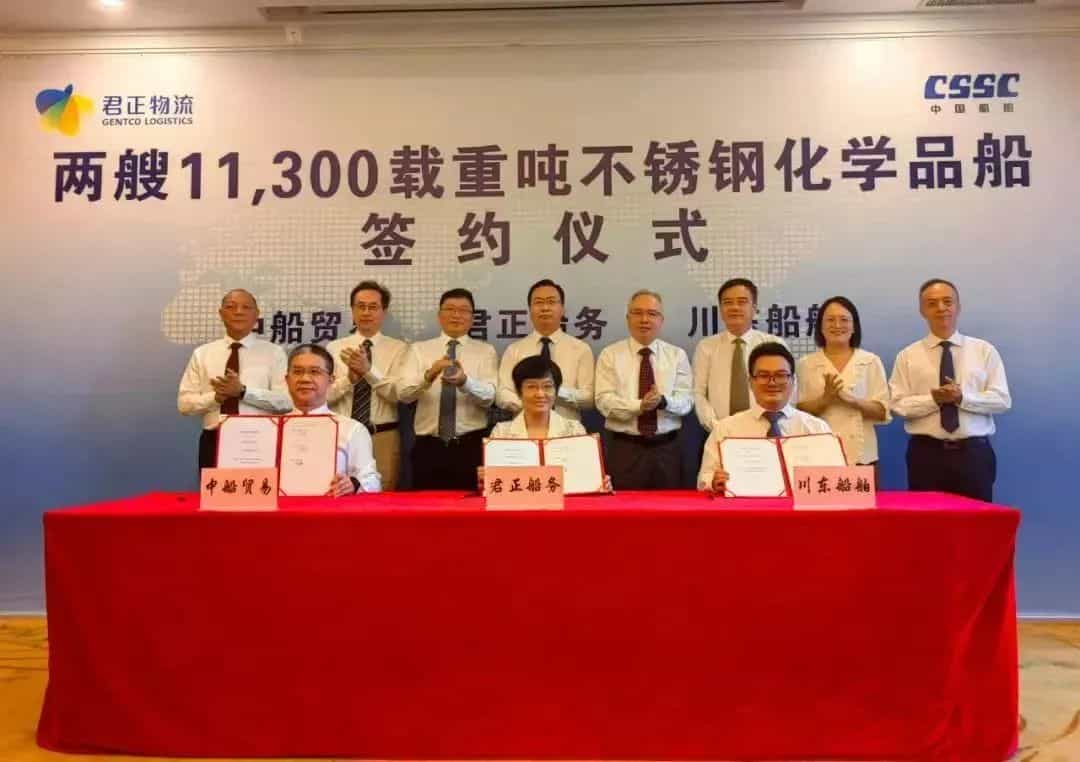 據悉,此次簽約的2艘1.13萬載重噸不銹鋼化學品船完工交付后,將投放于內貿市場運營,這是上海君正船務緊跟行業發展及客戶需求、為國內石化大客戶的液體化工品物流需求提供優質服務的又一重要舉措。