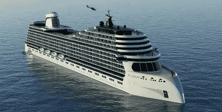 據悉,這艘新船總噸位55000噸,擁有17層甲板,船長229米,寬30米,擁有約450名船員。