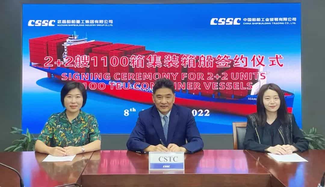 日前,中國船舶工業貿易有限公司聯合武昌船舶重工集團有限公司,與希臘船東以“云簽約”形式,簽訂了2+2艘1100TEU集裝箱船建造合同。