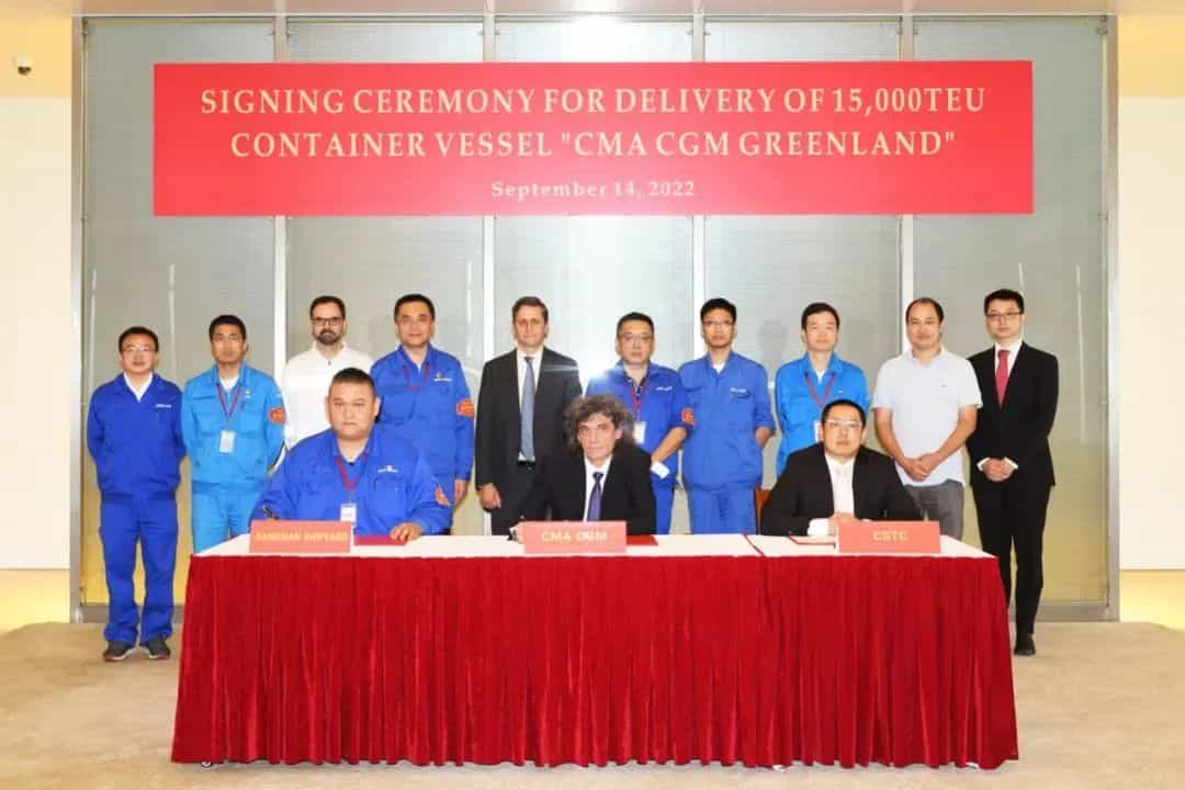 2019年3月25日,在國家主席習近平與法國總統馬克龍的共同見證下,中國船舶工業集團有限公司與達飛海運集團簽署戰略合作協議,同時達飛海運與江南造船簽署了5艘15000TEU雙燃料集裝箱船訂單。