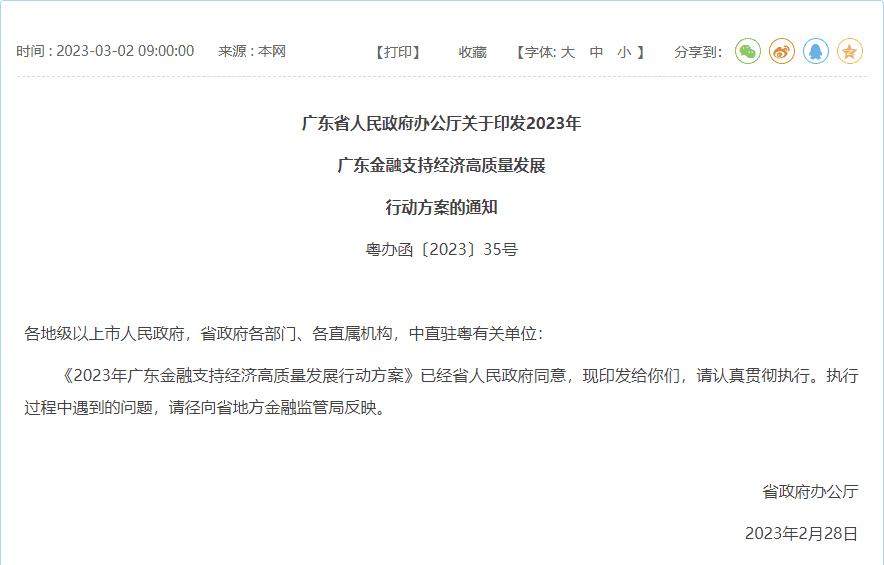近日,廣東省人民政府辦公廳正式印發(fā)《2023年廣東金融支持經(jīng)濟(jì)高質(zhì)量發(fā)展行動(dòng)方案》(以下簡稱《方案》)。