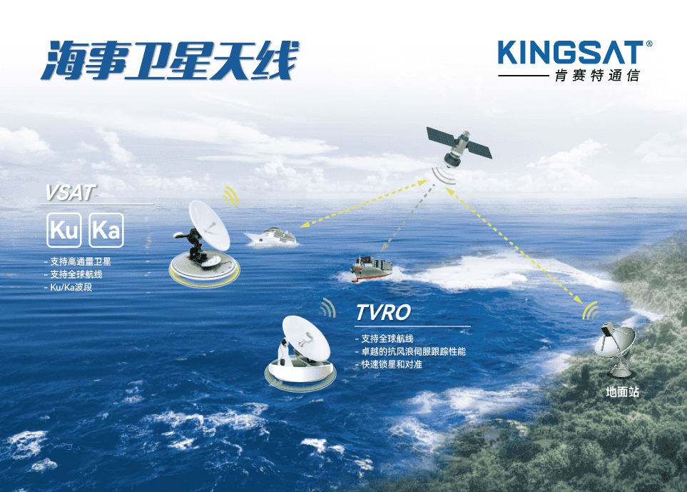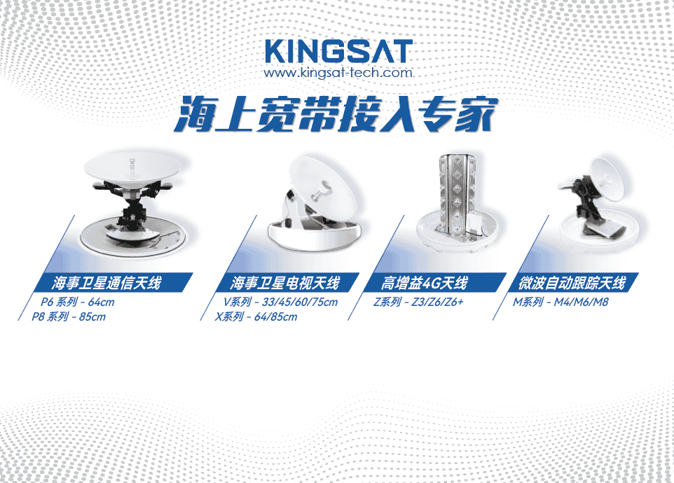 KINGSAT廣州肯賽特,專業從事海事衛星天線的生產和研發,可提供遠洋衛星網絡接入的衛星寬帶VSAT天線,近海寬帶接入的微波、4G天線,以及休閑娛樂的電視天線等產品。