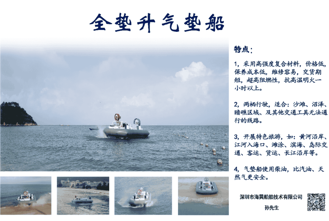 深圳市海巽船舶技術有限公司(簡稱:海巽船舶),經營范圍包括:全墊升氣墊船、側壁式氣墊船、小水線面SWATH、遠程無人高速船、遠程水下工作船等。